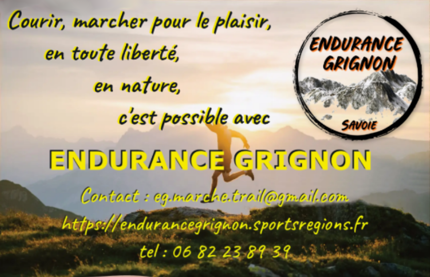 Toutes ces raisons, Endurance Grignon en fait son leitmotiv et propose à ses adhérents des rdv hebdomadaires les mardi, jeudi et dimanche et régulièrement des sorties conviviales dans la région d’Albertville. Plus d’infos sur notre site : https://endurancegrignon.sportsregions.fr/ ou par mail : eg.marche.trail@gmail.com